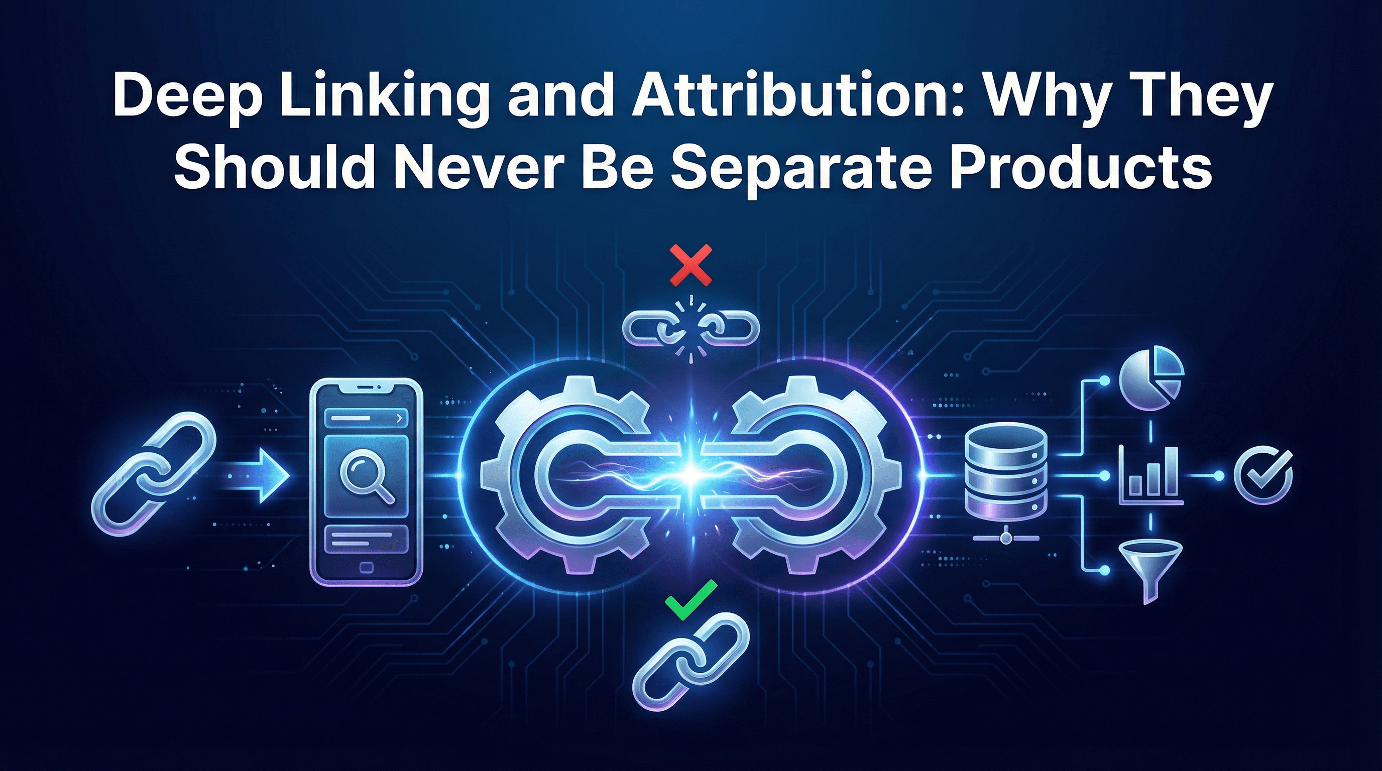 The separation exists for historical reasons, not technical ones. Early mobile marketing tools specialised in one problem: Branch started as a deep linking product, while AppsFlyer and Adjust started as attribution platforms. As mobile marketing matured, each expanded into the other's territory, but the architecture remained bolted-on rather than native.